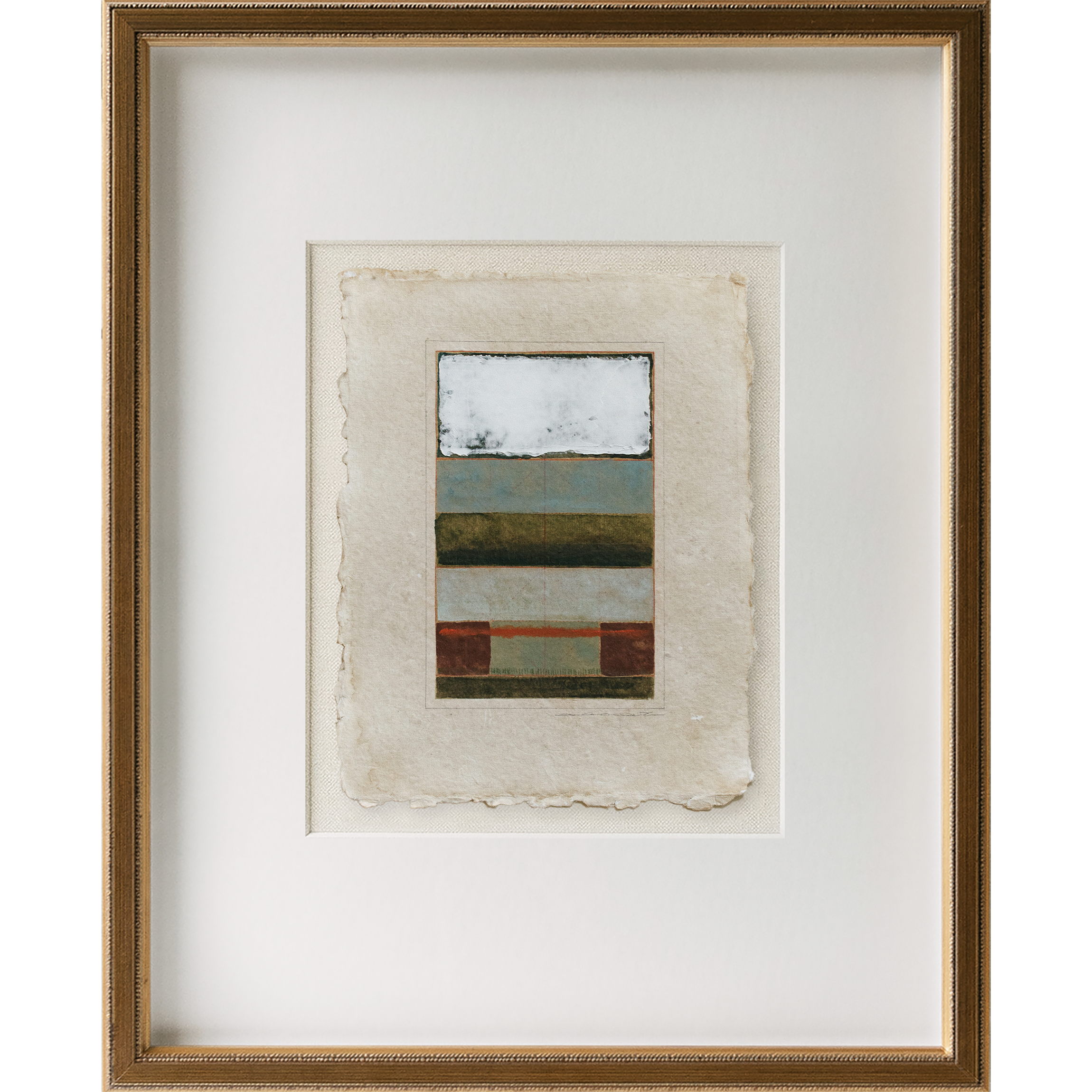 Mixed media work painted on handmade hand dyed rag cotton paper with a natural deckled edge.
